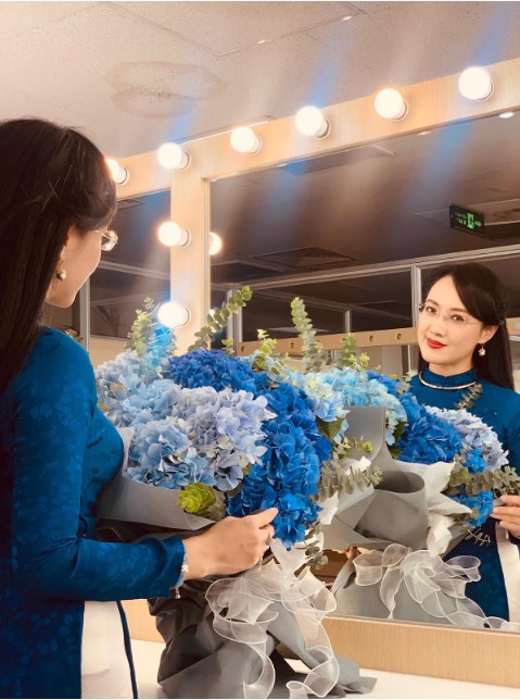 Được biết đây là lần hiếm hoi BTV Hoài Anh ăn mặc gợi cảm, khác hẳn với cách ăn mặc kín đáo thường thấy.