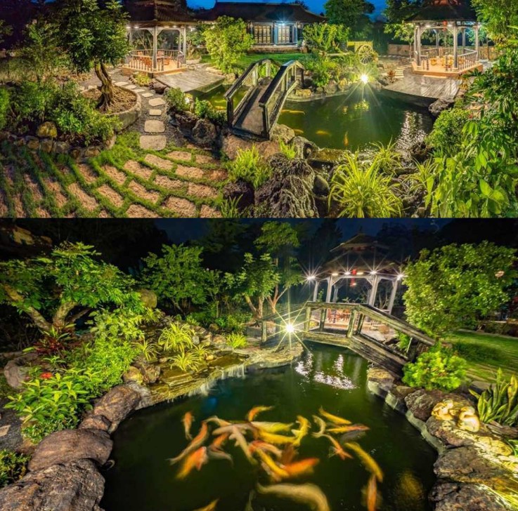 Do vậy, dù lịch trình bận rộn, nam danh hài xứ Quảng vẫn dành thời gian tận hưởng thư giãn tại biệt thự sân vườn này. Ngoài livestream thu hoạch vườn trái cây rộng lớn, hình ảnh hồ cá Koi với hàng trăm con cá quý đủ các kích thước và màu sắc luôn là tâm điểm chú ý của CĐM. Nhiều khán giả ước tính trị giá của Hồ cá Koi này phải lên tới hàng tỷ đồng.