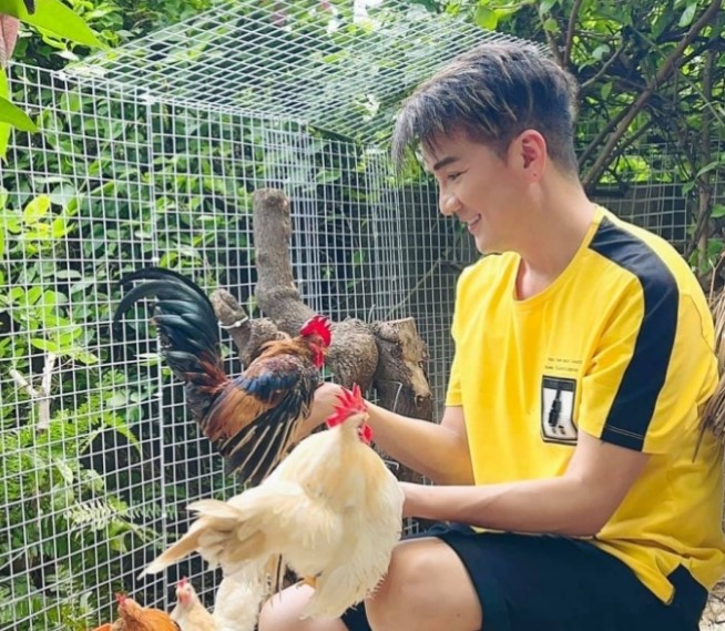 Không chỉ có vườn cây trái xum xuê, nam diễn viên ‘Mộng phù du’ còn tận dụng thiết kế một chiếc lồng nuôi gà ngay tại sân sau. Tổng đàn gà có số lượng 5 con, được chia thành hai chuồng, luân phiên cho trứng. Vì gia đình chỉ có hai người lớn nên lượng trứng thu được đủ dùng trong vài tuần.