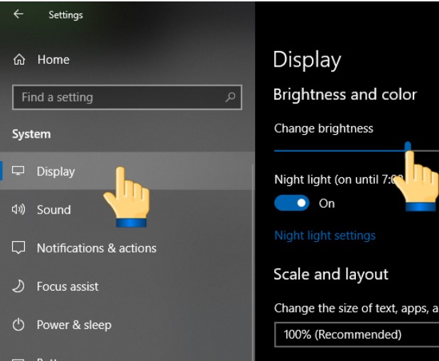 + Bước 3: Chọn Display -> Bạn điều chỉnh độ sáng bằng cách di chuyển thanh tăng giảm ở mục Change brightness