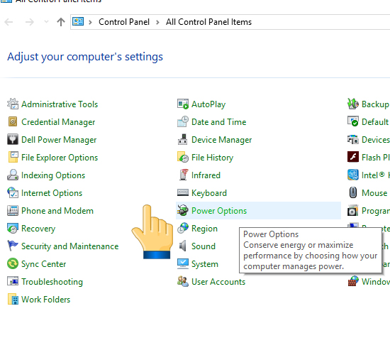 Đầu tiên,hãy nhấn tổ hợp Windows + S, khi hộp thoại tìm kiếm xuất hiện thì nhập từ khóa Control Panel-> Nhấp Chọn Power options. Sau đó, hãy kéo và điều chỉnh thanh trượt ở góc màn hình để chỉnh độ sáng theo ý thích.