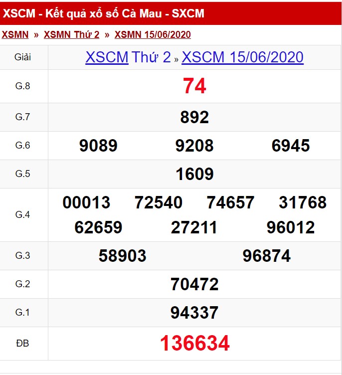 Kết Quả Sổ Xố Cà Mau thứ 2 ngày 15/6/2020