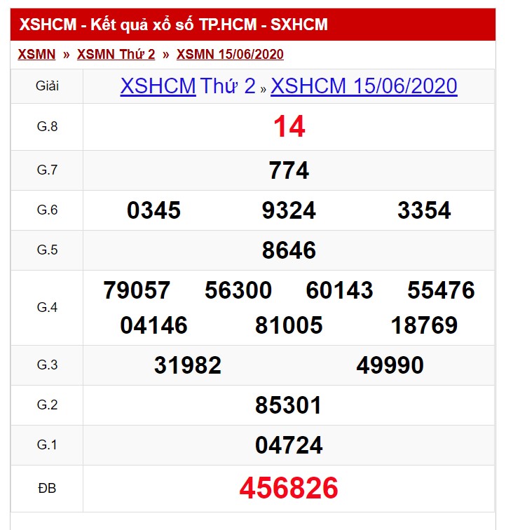 Kết Quả Sổ Xố TP.HCM thứ 2 ngày 15/6/2020