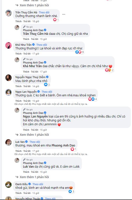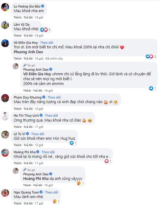 Vì không tiết lộ việc phẫu thuật của mình nên Phương Anh Đào khiến nhiều nghệ sĩ không khỏi bất ngờ, thấy thương cho cô nàng nhỏ bé cũng như gửi lời động viên đến nữ diễn viên.