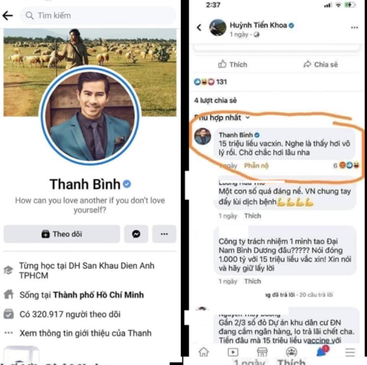 Cụ thể, nam diễn viên Thanh Bình đã để lại bình luận dưới bài viết như sau: "15 triệu liều vacxin. Nghe là thấy hơi vô lý rồi. Chắc chờ hơi lâu nha."