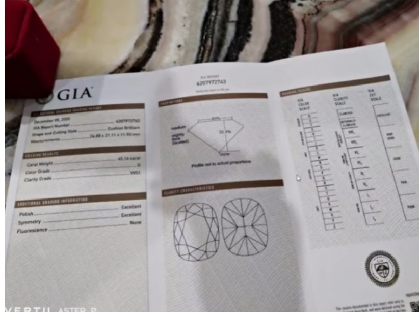 Trong một livestream bà Hằng đã khoe về việc mình vừa tậu nhẫn kim cương 45 carat, nước D thậm chí còn công khai giấy chứng nhận kiểm định của GIA (Trung tâm kiểm định Hoa Kỳ).