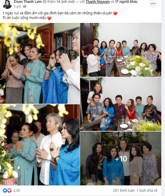 Mới đây, vào sáng 22/6, nữ Diva Thanh Lam đã bất ngờ báo tin vui, khoe loạt ảnh dạm ngõ với dòng thông báo trên trang cá nhân: “1 ngày vui và đầm ấm với gia đình bạn bè cảm ơn những thiện duyên.Tri ân cuộc sống muôn màu”.