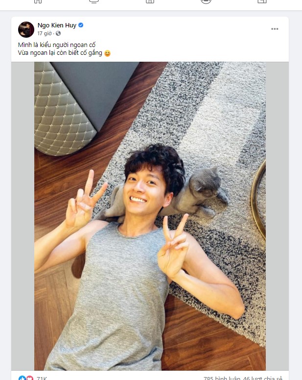 Tuy nhiên, Ngô Kiến Huy lại nhiều lần khiến khán giả lo ngại về vấn đề cân nặng. Mới đây nam ca sĩ đã đăng tải hình ảnh khoảnh khắc nằm nghỉ ngơi ở nhà trên trang fanpage của mình. Bức ảnh ở nhà trong mùa dịch của Ngô Kiến Huy đã khiến dân tình chú ý vì ngoại hình quá gầy gò của nam ca sĩ.