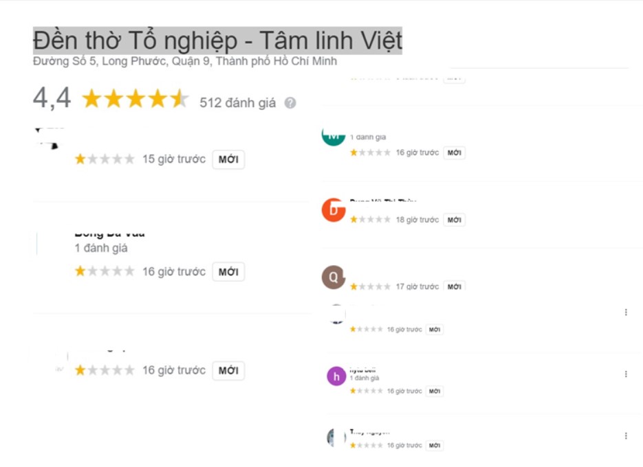 Dẫu vậy, nếu lướt xuống những đánh giá ở dưới, ai nấy đều phát hiện nhiều cư dân mạng đã đồng loạt đánh giá 1 sao cho địa điểm Đền thờ Tổ nghiệp - Tâm linh Việt.