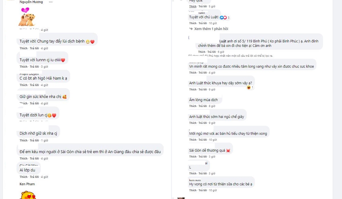 "Việt Nam mình rất mong có được nhiều tấm lòng vàng như vậy", "tuyệt vời, chung tay đẩy lùi bệnh dịch", "ấm lòng mùa dịch" - nhiều cư dân mạng thể hiện sự cảm động trước hành động ý nghĩa này.