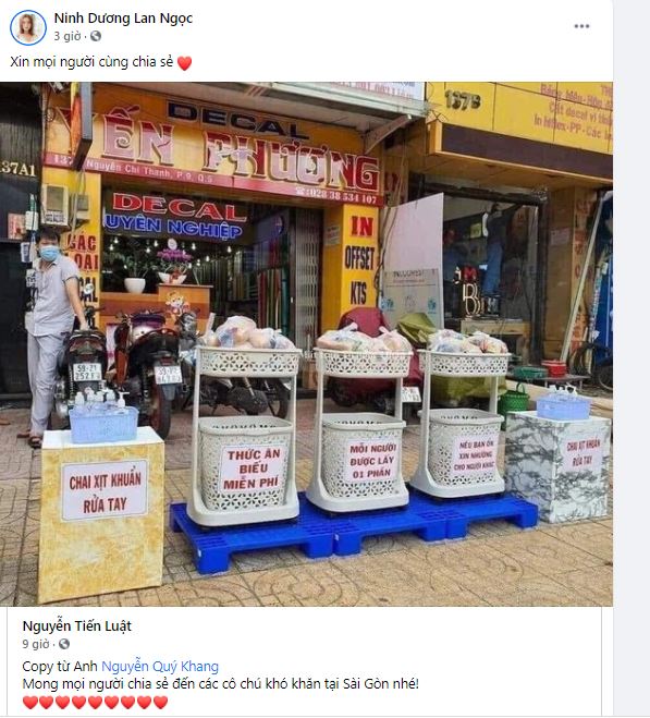 Đồng lòng cùng Tiến Luật, nữ diễn viên Ninh Dương Lan Ngọc cũng chia sẻ bài viết của ‘đàn anh’ cùng với mong muốn nhiều người khó khăn ở Tp.HCM sẽ được giúp đỡ một cách nhanh nhất.