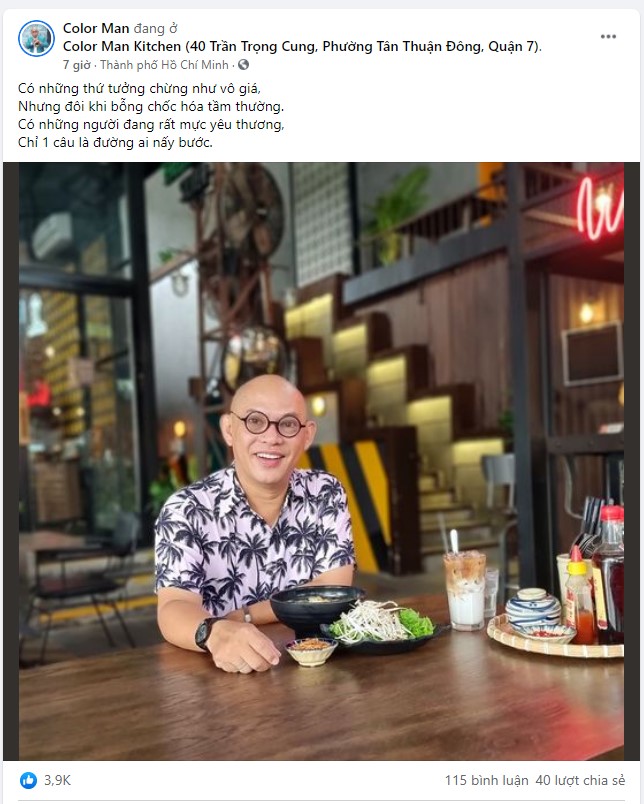 Mới đây, cũng vào ngày 5-6, “ông trùm” showbiz - Color Man đã đăng một bài viết đầy tâm trạng trên trang cá nhân: