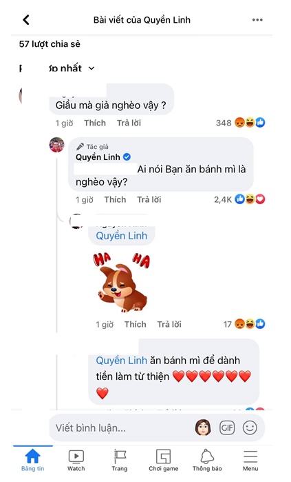 Nếu như hình ảnh gần gũi và thân thương của Quyền Linh nhận được nhiều sự yêu thích của cư dân mạng thì dưới phần bình luận lại xuất hiện 1 ý kiến đầy mỉa mai có ý cho rằng nam MC ‘giả nghèo’ khi chụp ảnh ăn bánh mì.