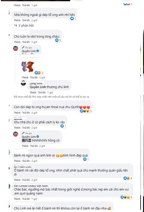 “Ấn tượng nhất là mấy đôi dép tổ ong vậy mới biết được đó là đặc trưng của MC quốc dân được toàn dân yêu quý chúc cả nhà khoẻ và bình an , yêu mến gia đình Quyền Linh”