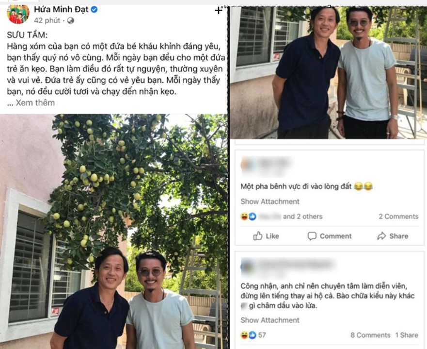 Hứa Minh Đạt là nam NS được nhắc tên trên mạng xã hội vì những bài đăng bênh NSƯT Hoài Linh. Theo đó, giữa lúc đàn anh đỡ đầu sự nghiệp của mình là Hoài Linh gặp những ồn ào liên quan đến vấn đề ông Võ Hoàng Yên cũng như việc bị chỉ trích khi ‘ôm’ gần 14 tỷ tiền kêu gọi cứu trợ miền trung trong suốt 6 tháng, Hứa Minh Đạt liên tục có những bài đăng bảo vệ ‘đàn anh’.