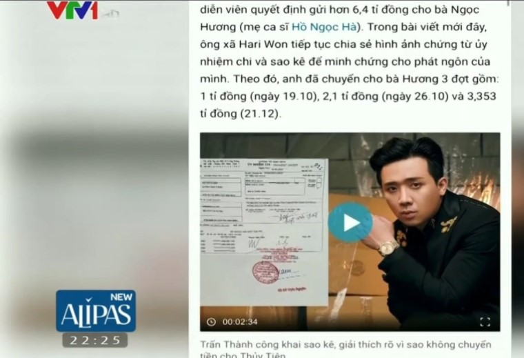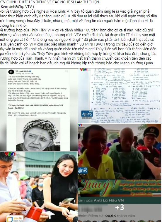 VTV1 còn đề cập đến bản sao kê bằng tờ A4 và nhóm antifan Thủy Tiên