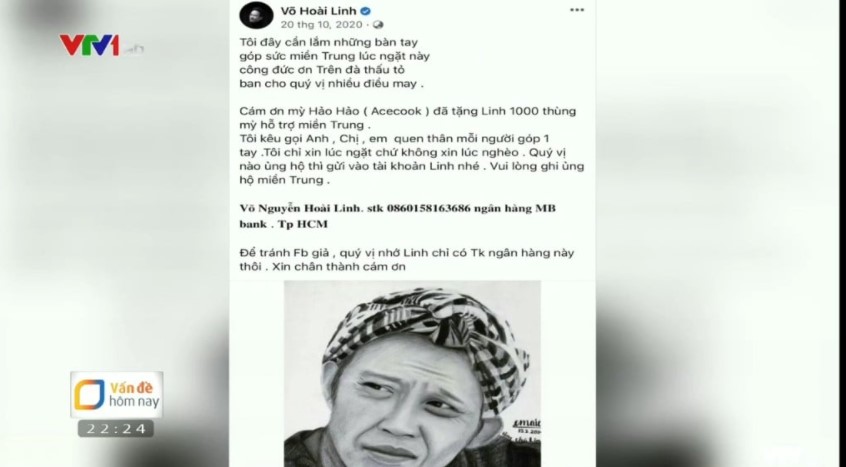 Vào tối 7.6 nhiều cư dân mạng vô cùng chú ý đến thông tin việc vấn đề Hoài Linh thực hiện kêu gọi cứu trợ, từ thiện sẽ xuất hiện trên trương trình Vấn đề hôm nay được phát sóng trên kênh VTV vào 22h15 tối ngày 7/6.