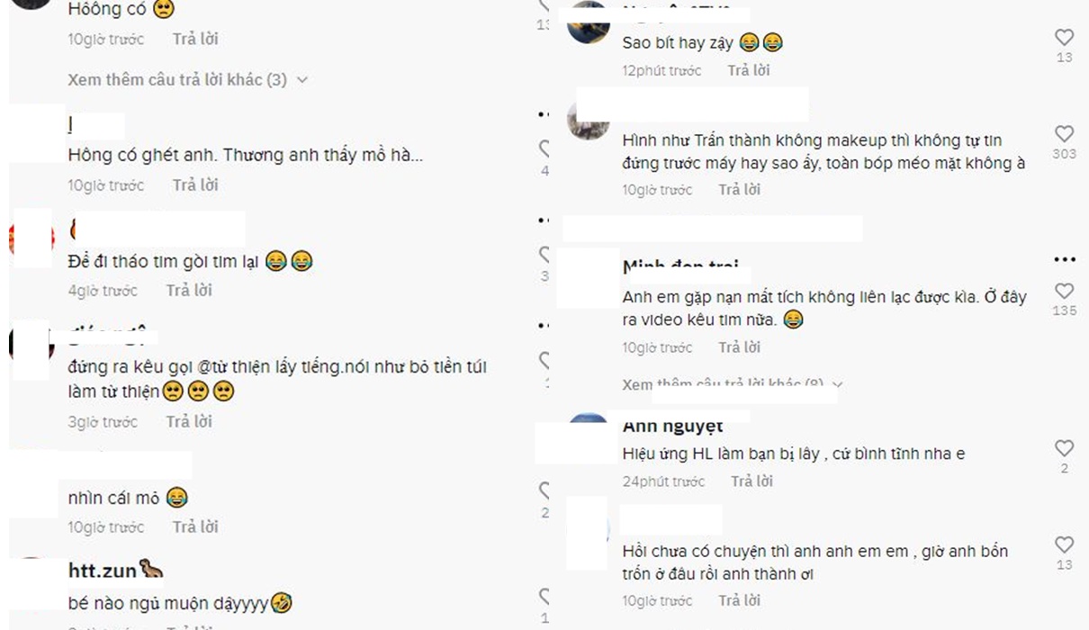 Những người thường xuyên theo dõi nam MC cho rằng đây là một cách nhõng nhẽo của Trấn Thành để kêu gọi mọi người thả tim thật nhiều cho các clip của mình. Nhiều người hâm mộ để lại bình luận ‘dỗ dành’ Trấn Thành: "Không có ghét anh.Thương anh thấy mồ hà", " Để em đi gỡ tim rồi tim lại nha"..