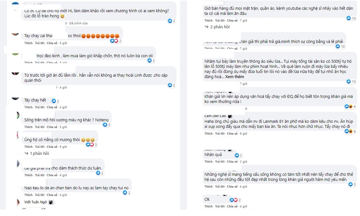 “Công ty giải trí gì mà thách thức dư luận không à, Dân tình tẩy chay nghệ sĩ Hoài Linh thì Điền Quân lại cố tình mời cho được Hoài Linh là sao không hiểu?”