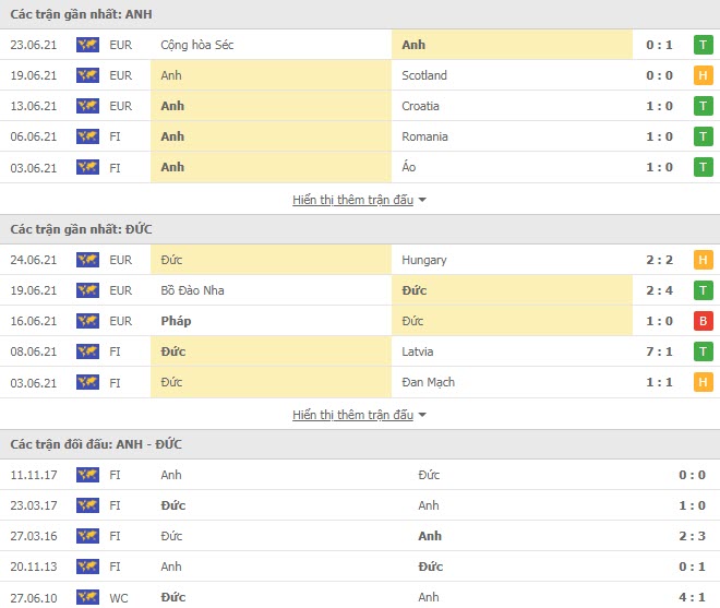 Với lịch sử chạm trán 5 trận gần nhất, ĐT Anh chỉ dành chiến thắng 1 lần trước ĐT Đức, còn lại là 1 kết quả hòa và 3 thất bại
