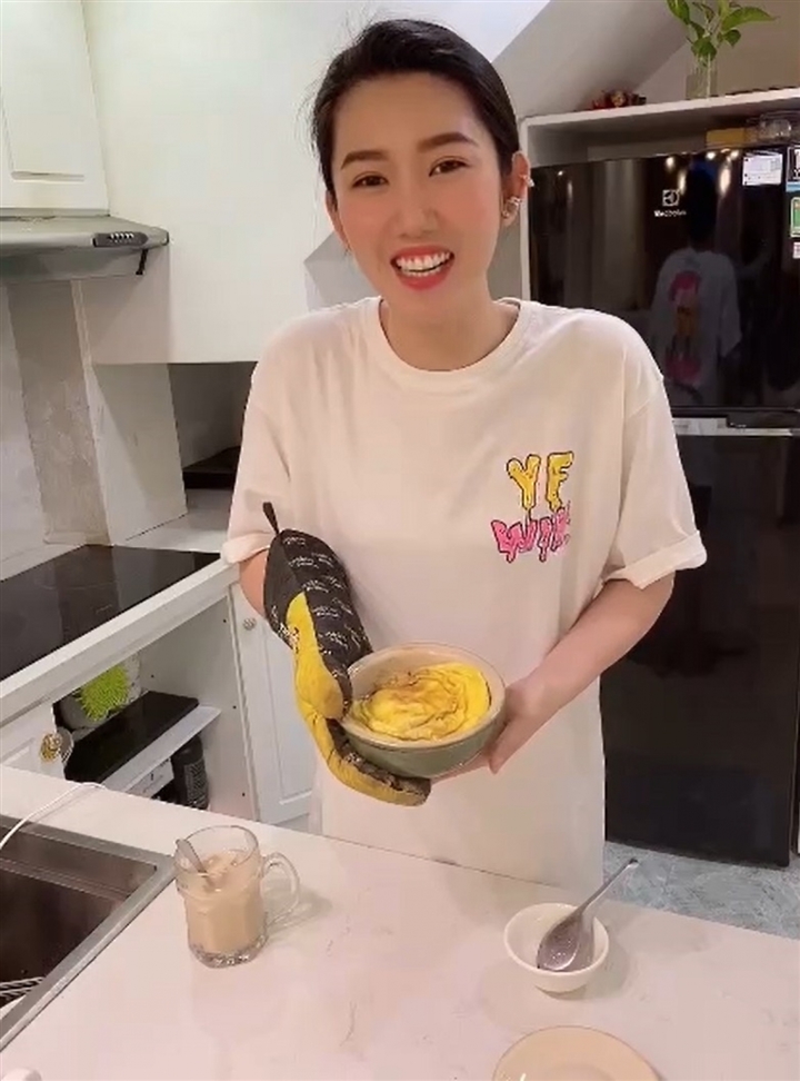 Theo đó, Thúy Ngân đã bị Trương Thế Vinh đặt ra thử thách "Run from home" với nội dung hãy “nấu một món ăn và gửi tới mọi người”. Sau khi nhận lời thách thức, Thúy Ngân đích thân vào bếp với món bánh trứng caramel công thức trên Tiktok kèm món trà sữa trân châu đường đen.
