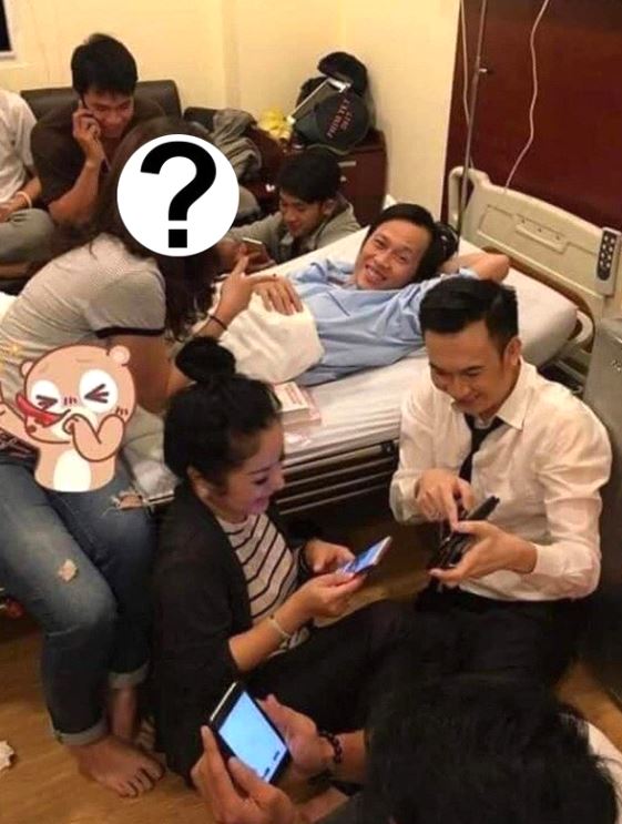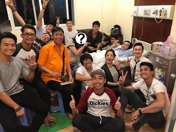 Trong bức ảnh này, NS Hoài Linh đang nằm trên giường bệnh và nhân vật nữ có ngoại hình giống với Đoan Minh cùng rất nhiều người đến thăm và vui vẻ chụp ảnh “tự sướng” cùng nam danh hài nhau.