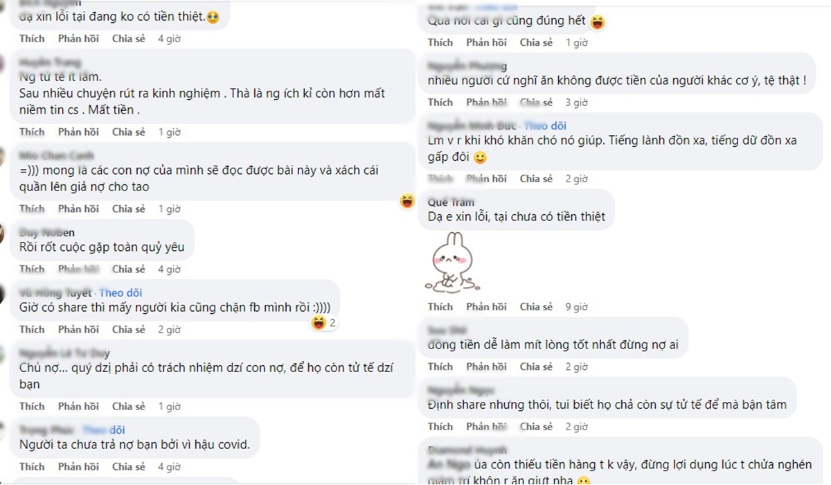 "Mong là các con nợ của mình sẽ đọc được bài này và xách cái quần lên giả nợ !"