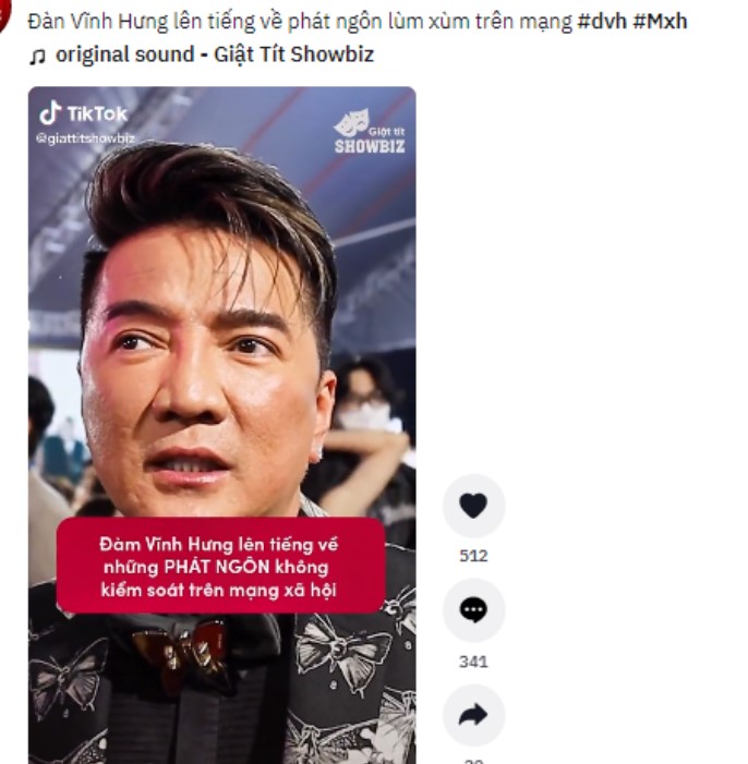 Được biết, trong quá khứ không ít lần giọng ca “Xin lỗi tình yêu” không ít lần ‘vạ miệng’ với những phát ngôn ngông cuồng. Nhiều người từng khẳng định dù được công nhận là ngôi sao hạng A nhưng Đàm Vĩnh Hưng "năm lần bảy lượt" gây ồn ào, tranh cãi trên mạng xã hội vì cách ứng xử chẳng giống ai.