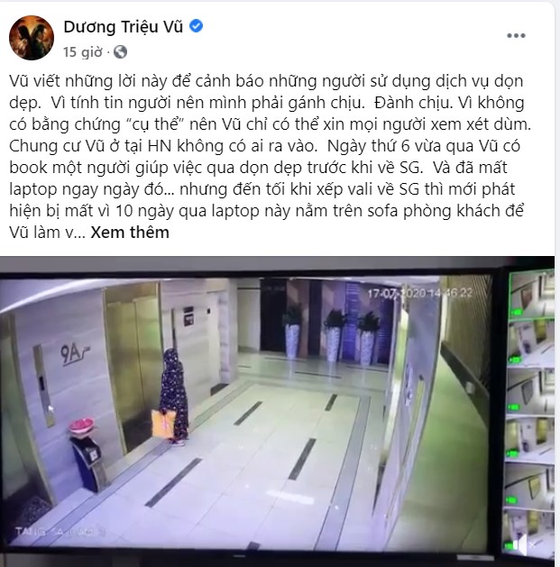 Mới đây, vào tối ngày 18/7, ca sĩ Dương Triệu Vũ - em trai của nghệ sỹ Hoài Linh đã khiến nhiều người hốt hoảng khi đăng tải một bài viết kể lại chuyện bị mất đồ giá trị và khẳng định kẻ trộm là người giúp việc được thuê qua mạng. Theo đó nam nghệ sĩ cảnh báo mọi người nên cẩn trọng khi thuê người giúp việc online.