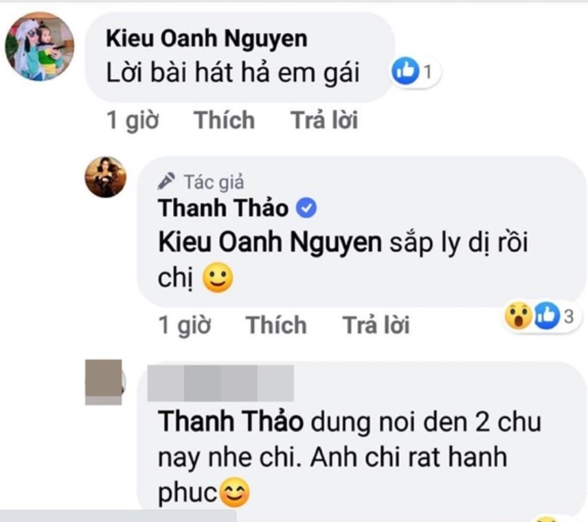 Đáng nói, Thanh Thảo còn trả lời bình luận của danh hài Kiều Oanh rằng "sắp ly dị rồi chị". Chính điều này đã khiến cư dân mạng hoang mang, lo lắng cho mối quan hệ của cô và chồng.