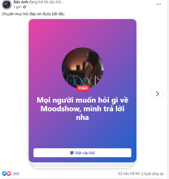 Mới đây, vào ngày 19/7, nữ ca sĩ Bảo Anh đã thực hiện chuyên mục hỏi đáp ngay trên facebook cá nhân.