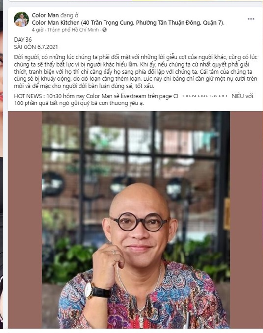 Trong tình cảnh khó khăn và đối diện với nhiều ý kiến trái chiều, Color Man vẫn chia sẻ những bài viết đầy lạc quan giữa lúc thành phố Hồ Chí Minh đang phải thực hiện giãn cách xã hội.