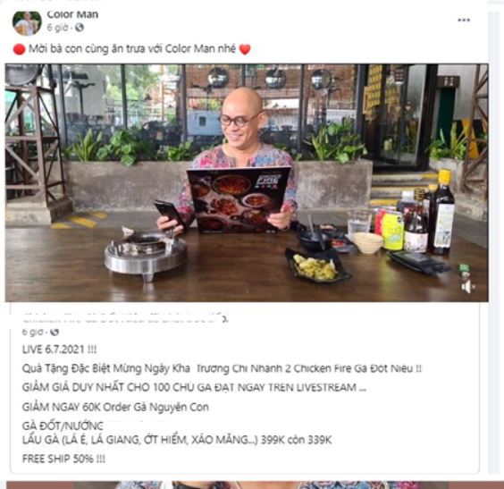 Trước đó vào ngày 29/6, Color Man đã đăng tải video lên kênh youtube của mình về việc khai trương thêm chi nhánh thứ hai của quán gà mang thương hiệu riêng của mình. Ông trùm showbiz cũng tiết lộ rằng quán ăn của mình sẽ được khai trương vào 7/7 sắp tới và bắt đầu mở bán vào ngày 1/7, anh cũng khuyến khích mọi người đặt mang về vì dịch bệnh đang diễn biến phức tạp.