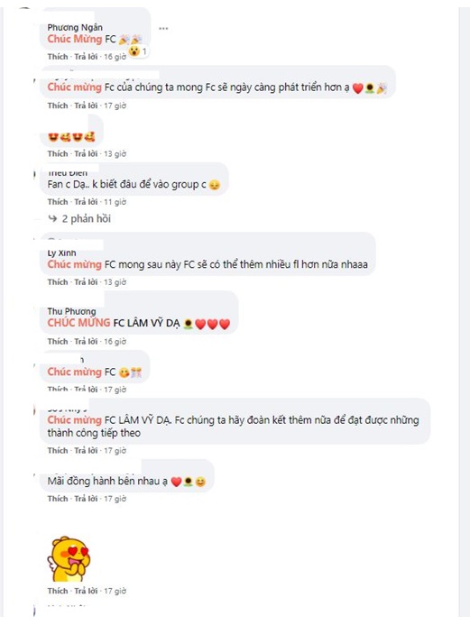 Theo đó, trang fanpage này được tạo vào 8/2019, sau một thời gian phát triển đã thu hút 15,000 lượt thích. Đây chính là niềm hạnh phúc của những người hâm mộ Lâm Vỹ Dạ đã theo dõi cô suốt một thời gian dài. Ở dưới bài viết ăn mừng 15,000 like, Lâm Vỹ Dạ cũng thả nhãn dán thể hiện sự vui mừng của mình.