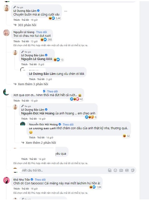 “Trời ơi! Con tao! Cái miệng này mai mốt livestream hú hồn à!” - Nữ diễn viên Khả Như cũng bình luận.