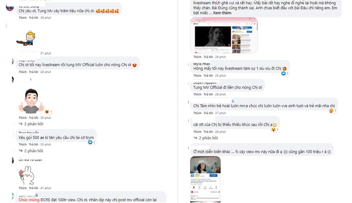 "Vậy là nỗ lực và công sức của FC đã được thành hiện thực. Chị ơi FC và mọi người đều rất mong ngóng phiên bản còn lại của MV ạ ! Mong chị có thể công bố phiên bản đó ạ!"
