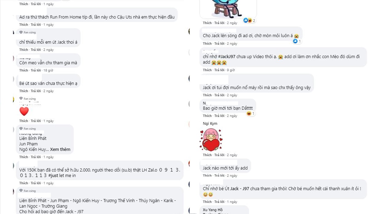 “chỉ nhớ #JackJ97 chưa up Video thôi ạ. AD ơi làm ơn nhắc con Mèo đó dùm đi ad!”
