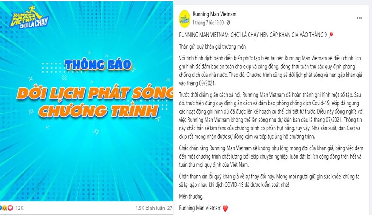 Mới đây, chương trình Running Man đã thông báo lùi lịch phát sóng từ tháng 7 sang tháng 9 vì tình hình phức tạp của dịch bệnh, khiến khán giả không khỏi tiếc nuối.