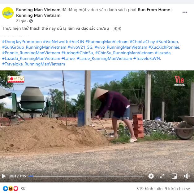 Mới đây, fanpage cũng như kênh Youtube của chương trình Running Man VN cũng đã đăng tải đoạn clip Trường Giang thực hiện thử thách chống đẩy với gạch và cát theo lời yêu cầu của Ninh Dương Lan Ngọc.