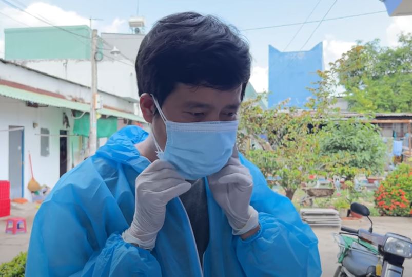 Sau đó, Khương Dừa đã đích thân chở 100 bộ quần áo bảo hộ đến các xã đang cần giúp đỡ.