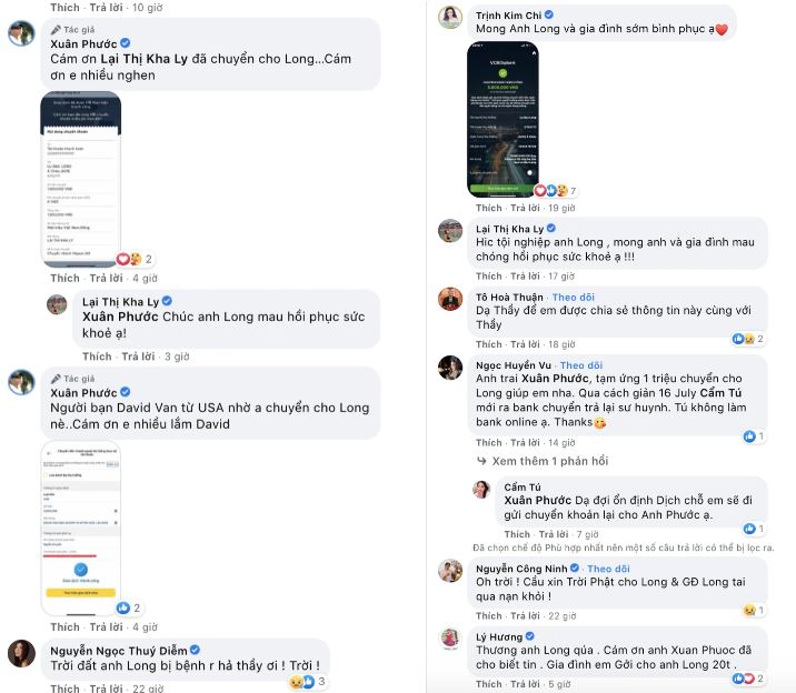 Nhiều nghệ sĩ như Xuân Phước, Kha Ly, Trịnh Kim Chi cũng đã đồng loạt chuyển khoản để giúp đỡ nam diễn viên có thể vượt qua giai đoạn khó khăn này.
