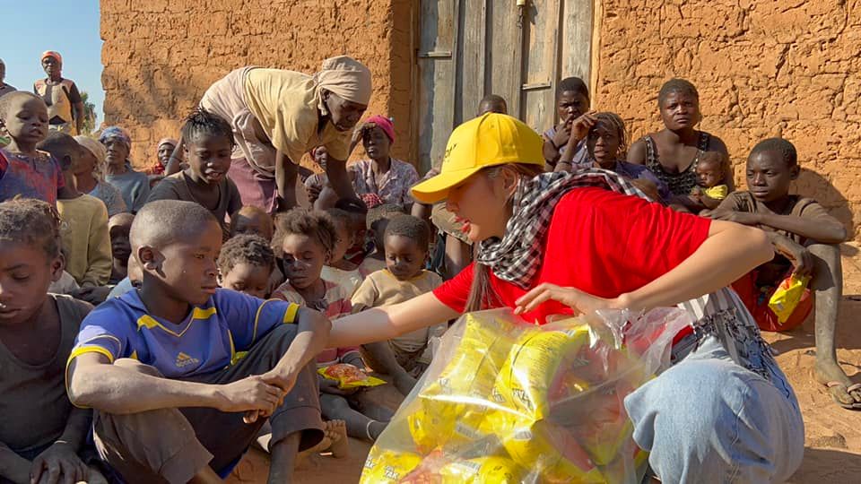 Hoa Hậu Thùy Tiên trao quà cho các trẻ em châu Phi