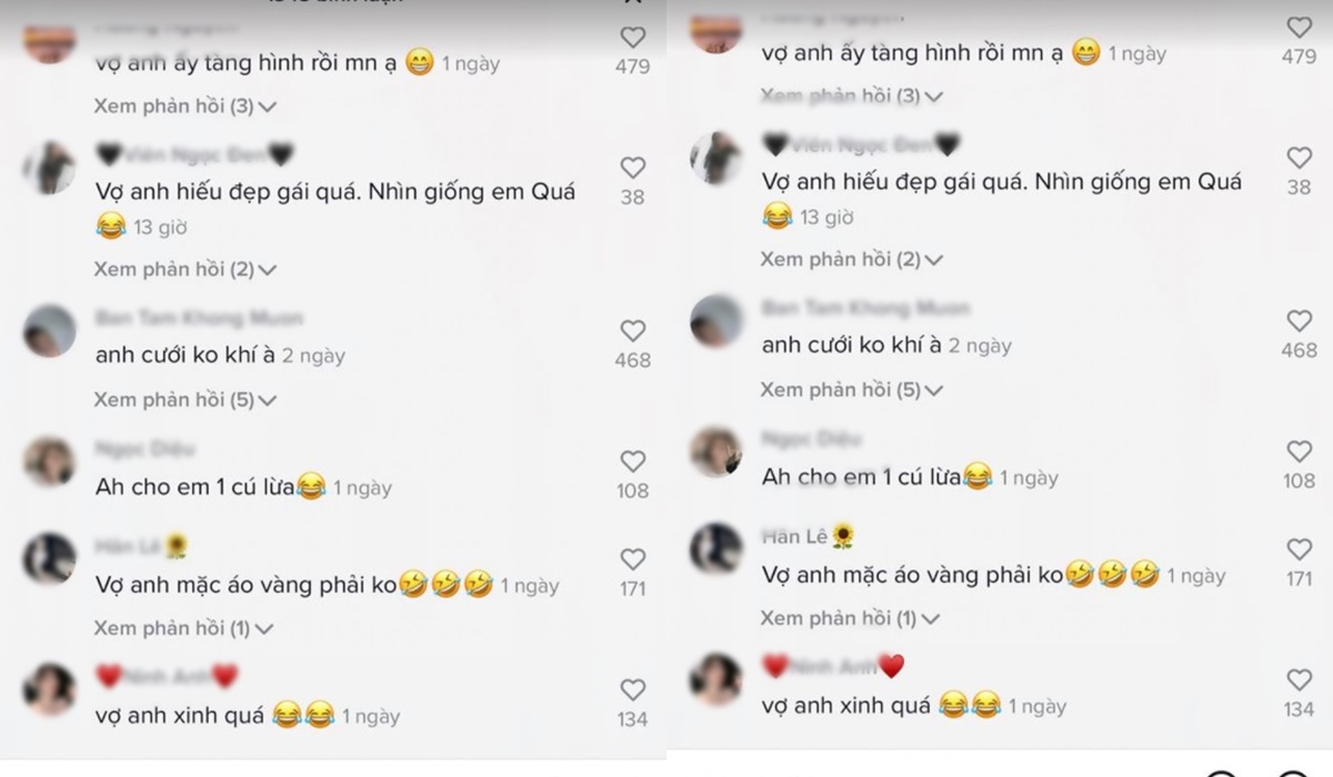Clip này đã nhận về những bình luận hài hước không kém đến từ cư dân mạng: "Anh cho em 1 cú lừa", "Vợ Anh mặc áo vàng phải không", "Vợ anh là không khí à", "Vợ anh xinh quá!".
