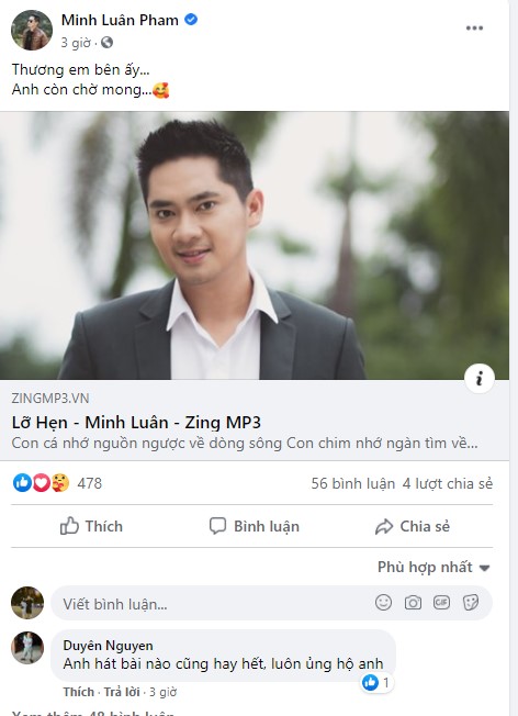 Mới đây, nam diễn viên đã đăng tải lên trang cá nhân lại bài hát ‘Lỡ hẹn’ do chính mình thể hiện với trạng thái đầy nhớ nhung và hối tiếc: “Thương em bên ấy...Anh còn chờ mong.”