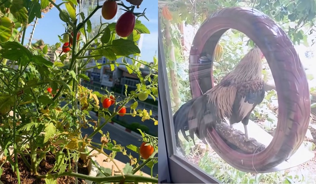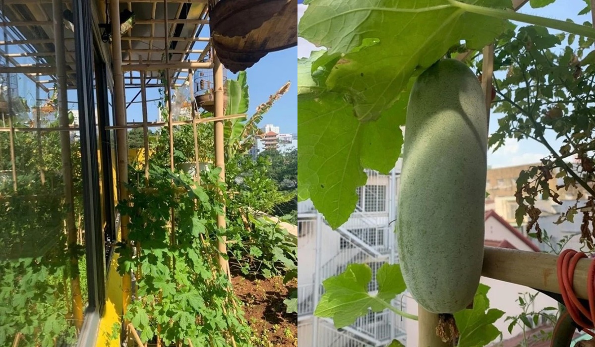 Theo đó, cửa hàng của Trường Giang đã biến sân thượng thành một khu vườn xanh mướt với nhiều loại rau quả, thậm chí còn nuôi gà ngay trong ‘khuôn viên’.