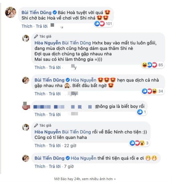 Tin đồn về việc Hòa Minzy đã bí mật sinh con xuất hiện vào cuối năm 2019. Đáng nói, Hòa Minzy và cầu thủ Bùi Tiến Dũng đã để lộ nhiều chi tiết ngầm tiết lộ giọng ca 25 tuổi đã có con. Theo đó, Bùi Tiến Dũng đã bình luận trên trang cá nhân của Hòa Minzy: "Shi (tên ở nhà của con gái Bùi Tiến Dũng) chờ bác Hòa về chơi với Shi", nữ ca sĩ cũng hào hứng đáp lại: "Đang mùa dịch cũng không dám qua thăm Shi. Đợi qua dịch chúng ta gặp nhau nhé. Mai sau có khi làm thông gia".