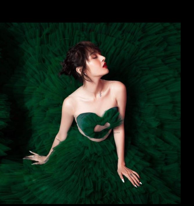 Trong bức ảnh này, ngoài nhan sắc xinh đẹp, Bảo Anh còn gây chú ý khi diện một bộ váy vừa thướt tha lại không kém phần táo bạo.
