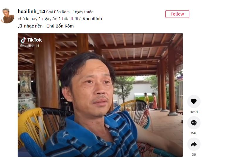 Mới đây, vào ngày 20/8, 1 tài khoản có tên ‘Chú Bốn Ròm’ với hình đại diện của Hoài Linh đã đăng tải 1 đoạn clip nam danh hài chia sẻ về cuộc sống ở nhà thờ Tổ nghiệp trăm tỷ.