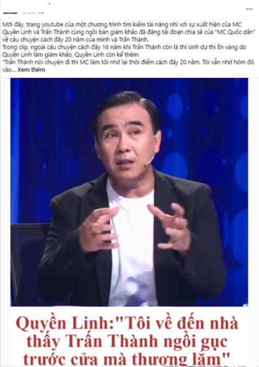 Điều đáng nói, trong chương trình này, MC Quyền Linh đã kể câu chuyện cách đây 20 năm của mình và Trấn Thành.