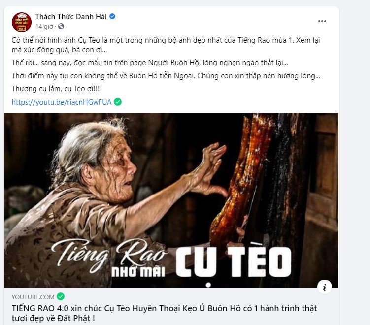 Bài viết trên Fanpage chia sẻ một cách xót xa: “Có thể nói hình ảnh Cụ Tèo là một trong những bộ ảnh đẹp nhất của Tiếng Rao mùa 1. Xem lại mà xúc động quá, bà con ơi...